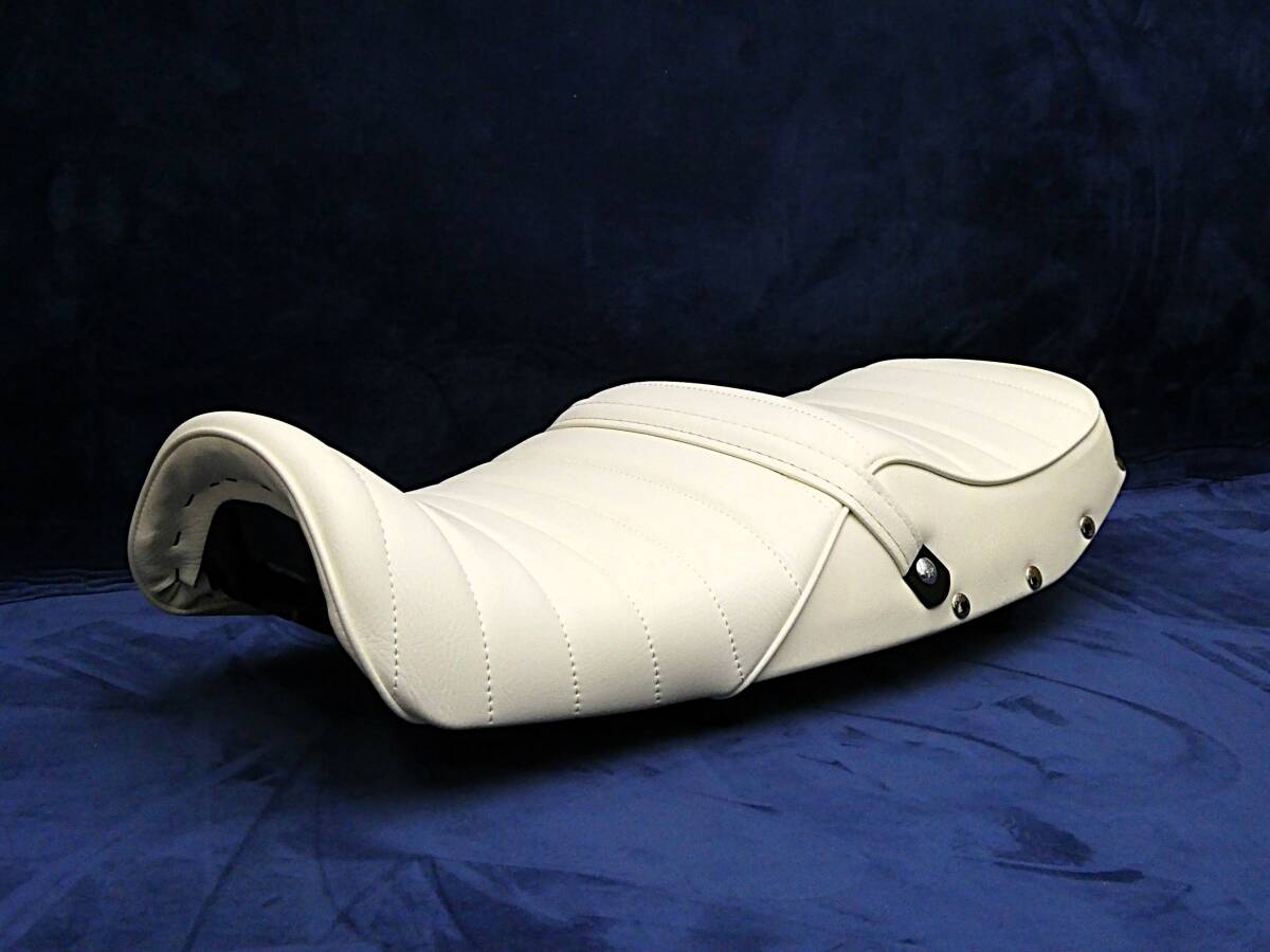 > XJR400R 後期 白皮ボタン タックロールシート/段シート 黒RH02Jホワイト XJR400Rリベット4HM9ダブル アンコ抜き ローダウンシート