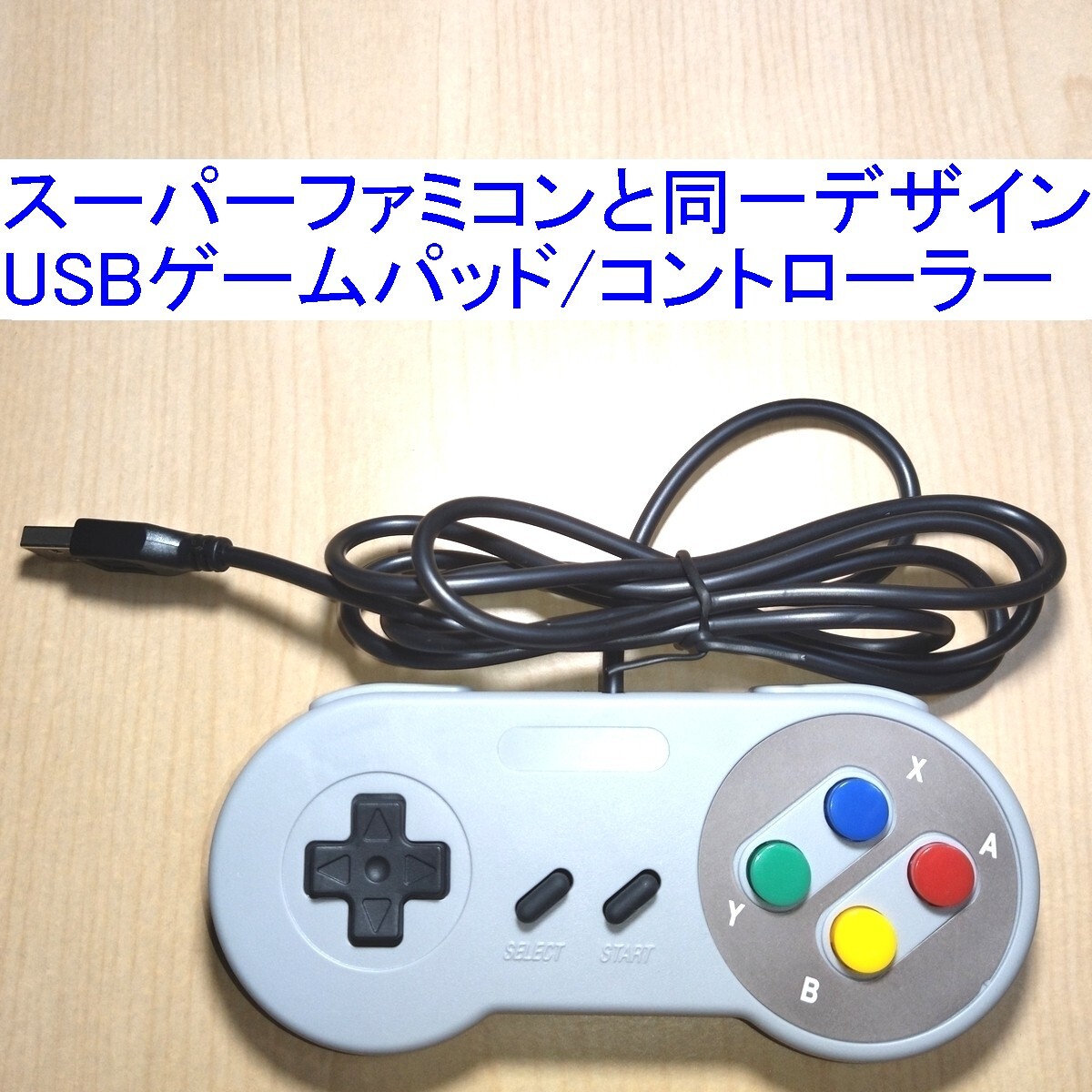 スーパーファミコンと全く同じデザインのUSBコントローラー(ゲームパッド)です。