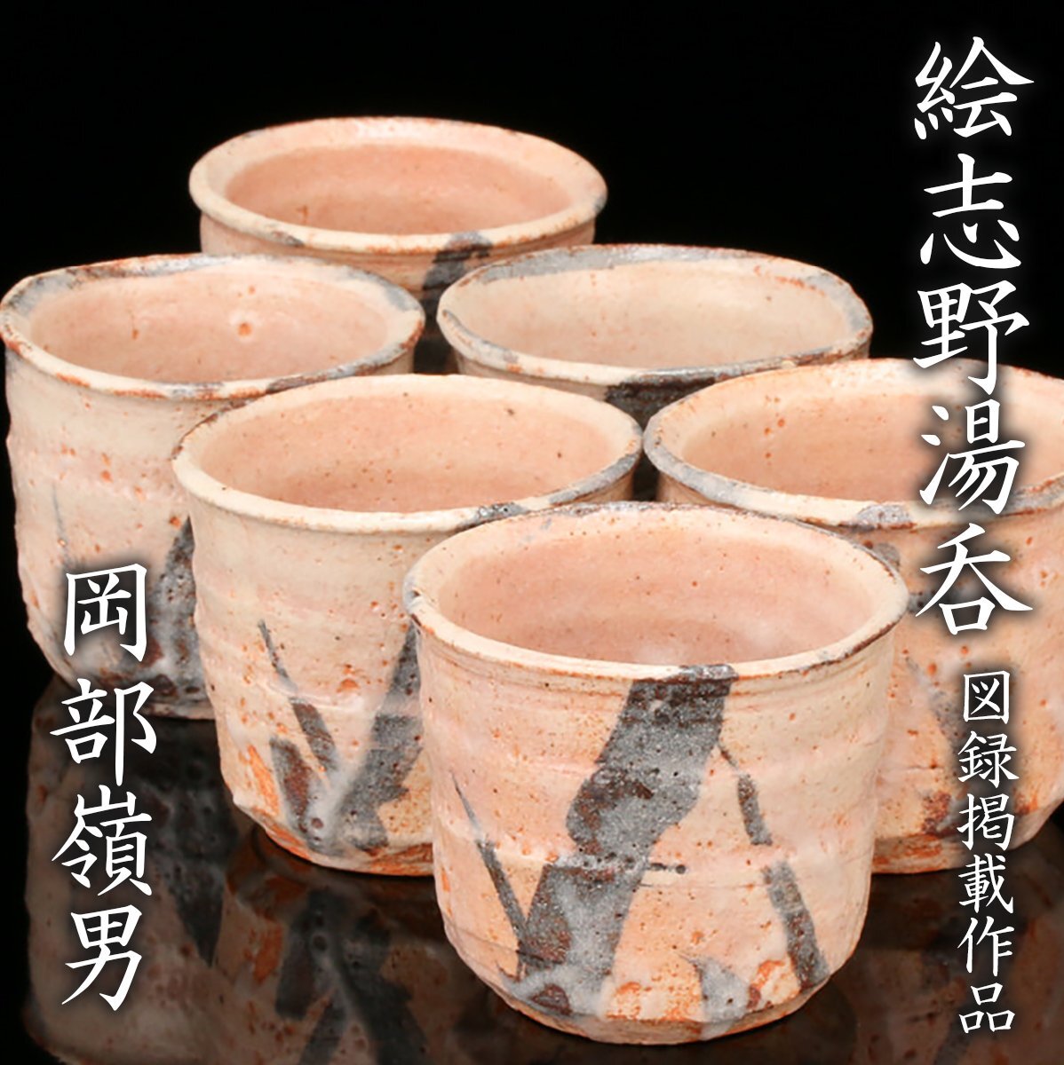 > 岡部嶺男『絵志野湯呑「六客」』最上位作 図録掲載!共箱 図録コピー 本物保証 送料無料【松森美術】