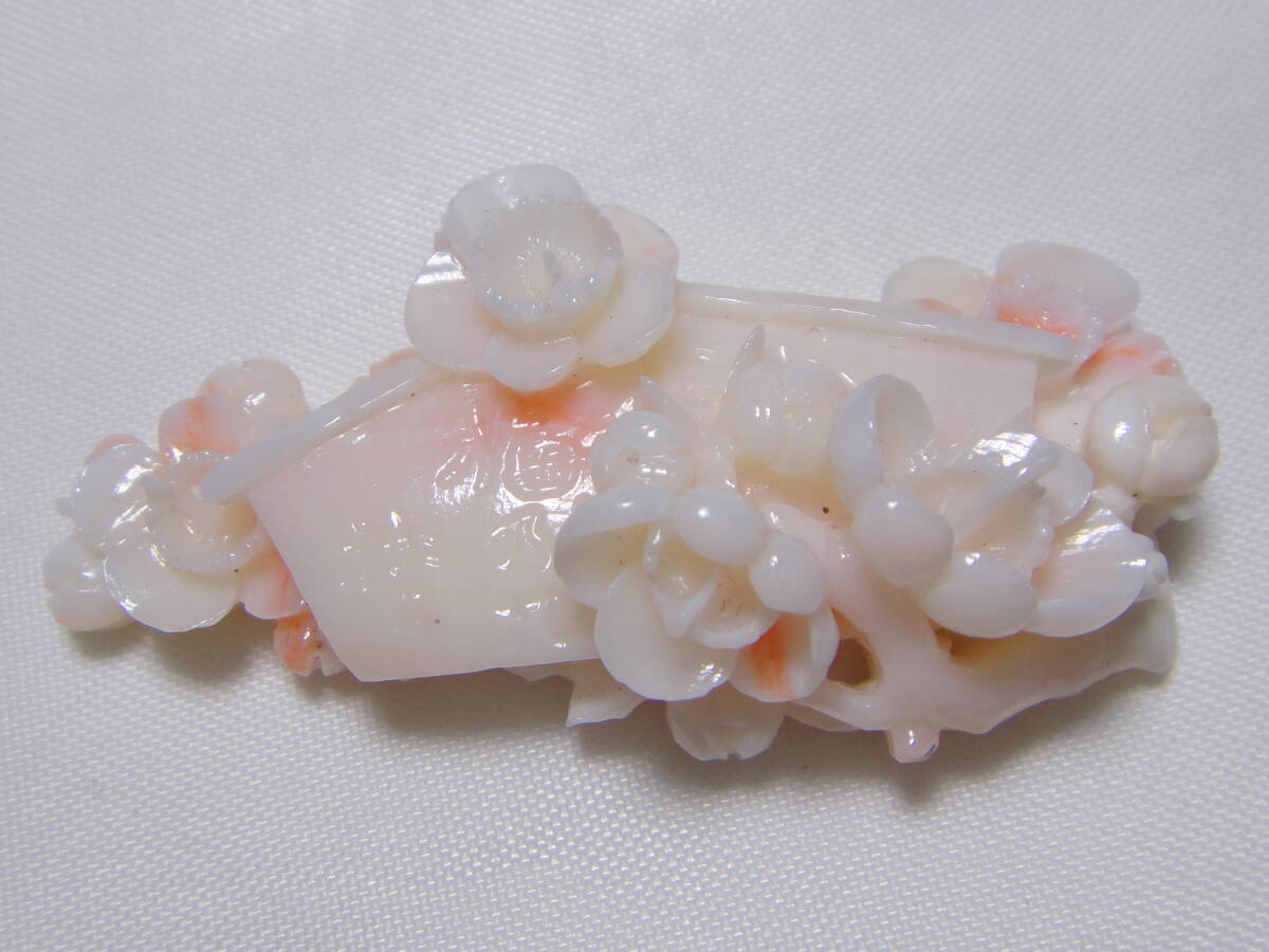 - 本珊瑚 サンゴ さんご コーラル 帯留め ルース 梅花 彫刻 立体的 レトロ ヴィンテージ アンティーク Y753