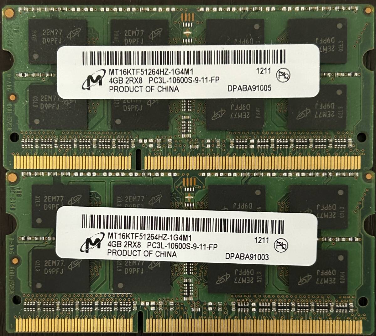 > 即決 動作確認済み Micron マイクロン SO-DIMM 204pin DDR3L PC3L-10600S 4GB×2枚1.35V低電圧対応 1.5V対応 ノートパソコン用 806