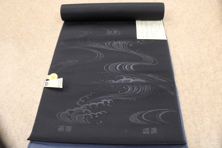- きもの今昔8872 呉服店在庫処分品 黒の礼装 黒共名古屋帯 西陣織正絹「新泥黒染」流水に波頭の柄