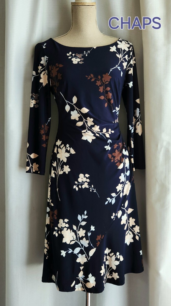 - 未使用レベル CHAPS 素敵なジャージワンピース 花柄 ネイビー S~M