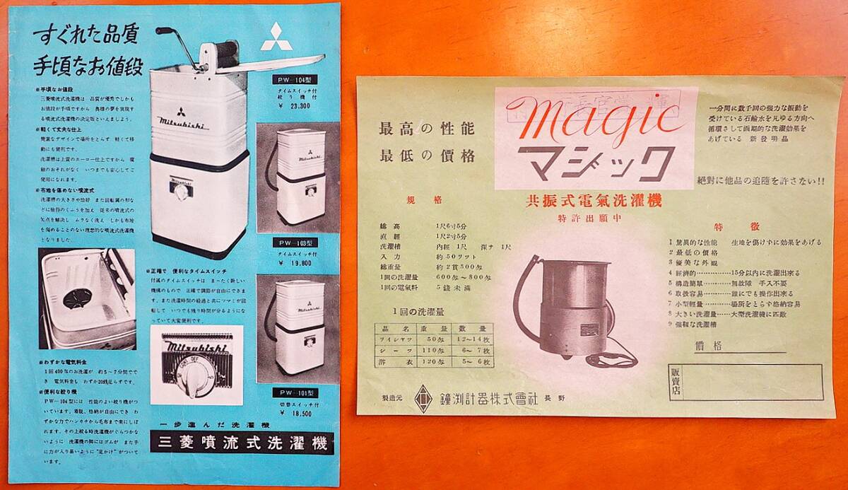 - 三菱噴流式洗濯機/マジック共振式洗濯機 チラシ2枚 三菱電機(株)/鐘渕計器(株)発行 検:古い電気洗濯機カタログ ランドリー 昭和レトロ家電