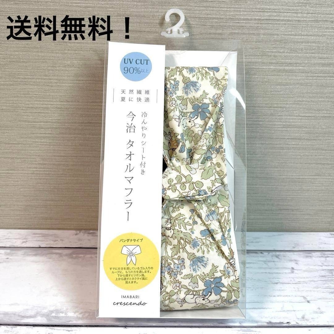 - 冷やりシート付き 今治タオルマフラー バンダナ 花 ネコ 天然繊維 新品未使用