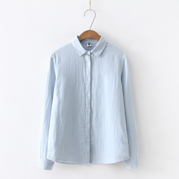 > c 2508 ダブルガーゼ ワイシャツ フリーサイズ チュニック トップス ナチュラル 綿100% 通気性肌触り抜群 サラサラ ゆったり ブルー