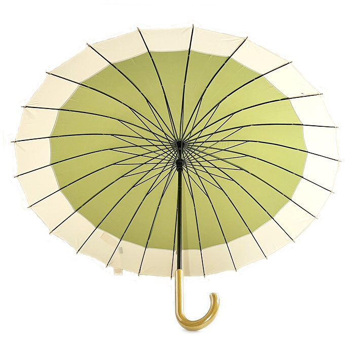 - 蛇の目風24本骨傘 もえぎ×アイボリー 雨傘 番傘風 手開き式 和風傘 和モダン カジュアル 大きめの傘 和傘 長傘