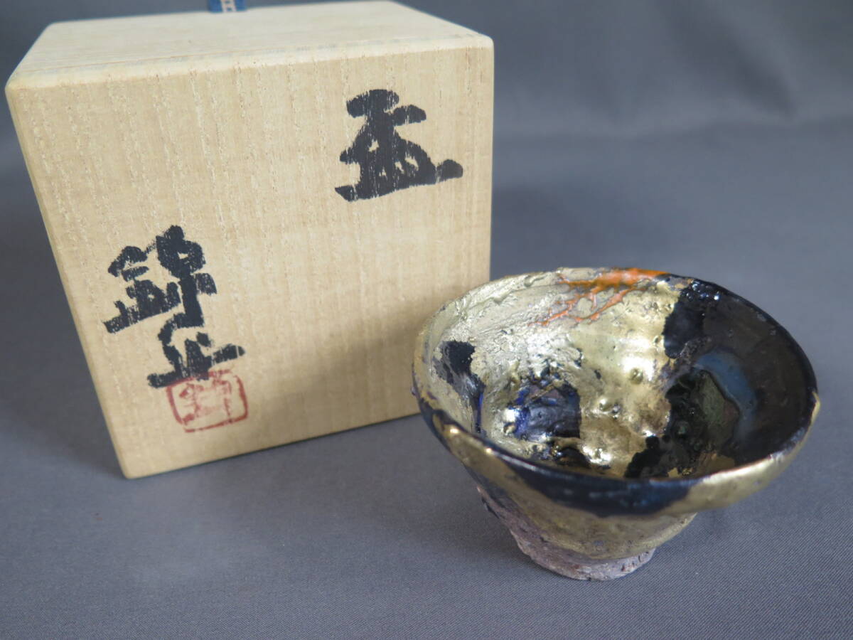 - 【真作保証】中村錦平(中村梅山 長男)「盃」金彩★ぐい呑 酒器 陶芸家 東京焼