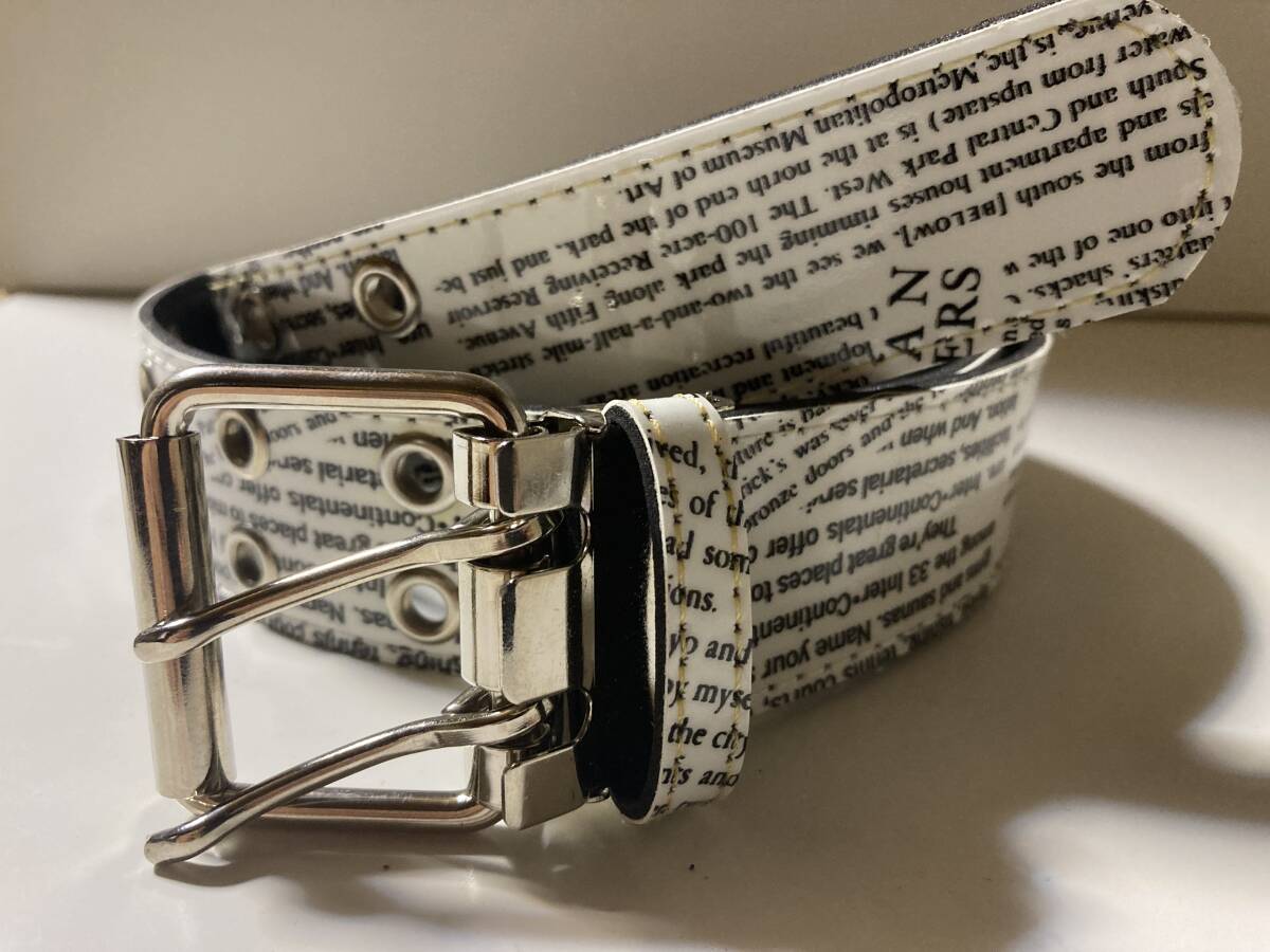 - フェイクレザープリントベルト ダブルピンベルト エナメル WHI