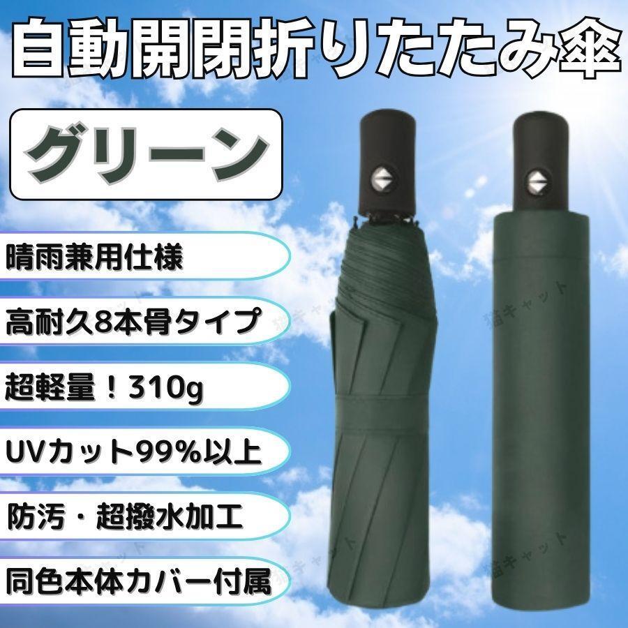 - 晴雨兼用 折りたたみ傘 ワンタッチ 自動開閉 雨傘 日傘 8本骨 折り畳み傘 男女兼用 耐風 撥水 大きい 遮光遮熱 UVカット 梅雨対策 グリーン