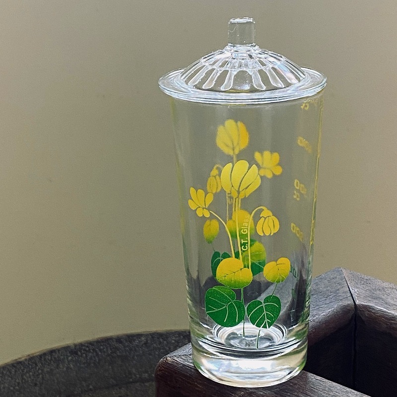 > ◆台湾◆レトログラス◆CTグラス 大 花 黄緑 500 目盛り付◆台湾ガラス◆ヴィンテージwi9643380c