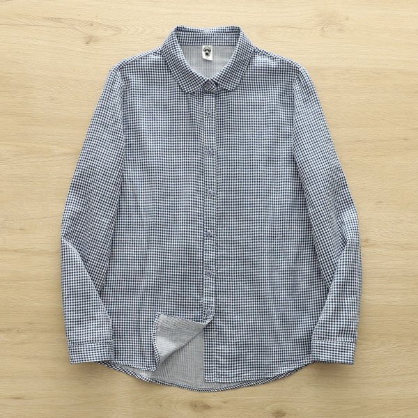 - c 2508 ダブルガーゼ フリーサイズ ワイシャツ チュニック トップス ナチュラル 綿100% 通気性肌触り抜群 サラサラ ゆったり チェック柄4