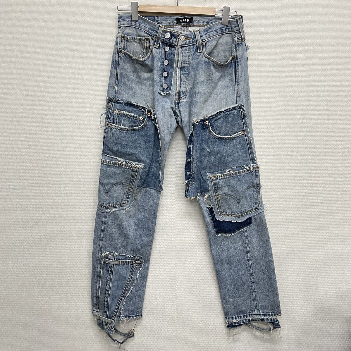 - 【no mass prod】ノーマスプロッド★デニムパンツ 501 リメイク 加工 ジーンズ 古着 サイズ35 08