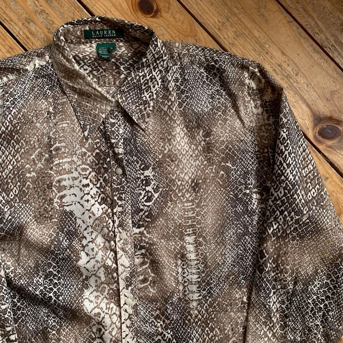 - USA古着 Ralph Lauren ラルフローレン 総柄シャツ レディース Lサイズ カジュアル パイソン 蛇柄 派手 トップス スネーク SNAKE T3129