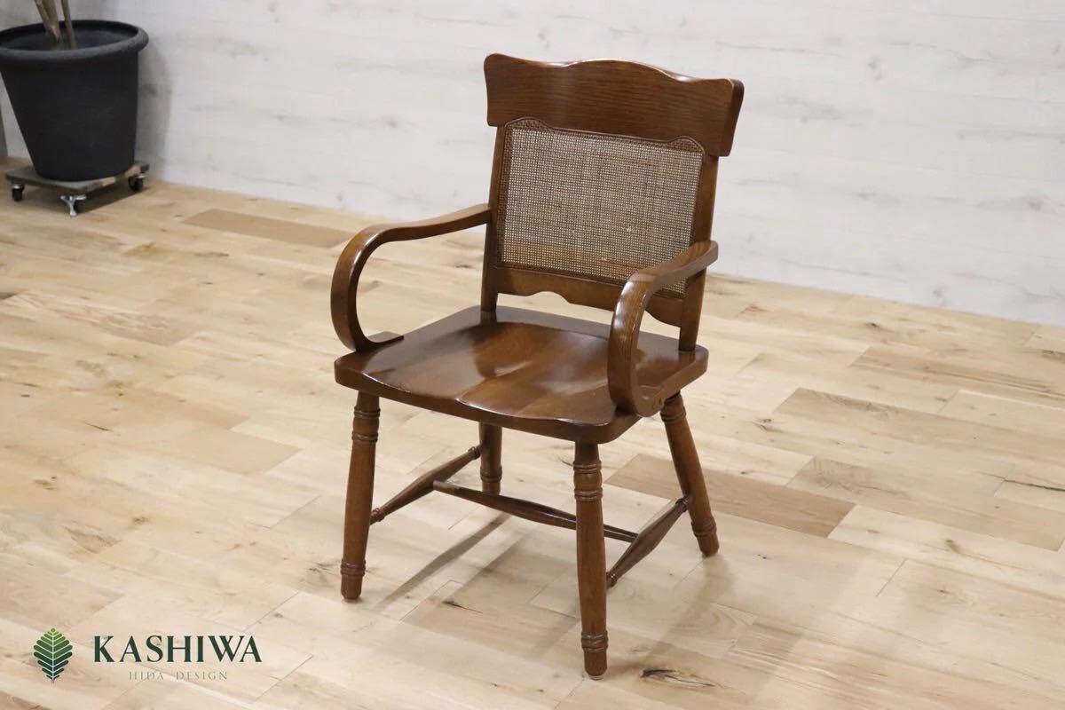 > GMDNS127B○ KASHIWA / 柏木工 木製 アームチェア ダイニングチェア 椅子 カントリー レトロ 楢材 飛騨の家具 カフェ 古民家 アンティーク
