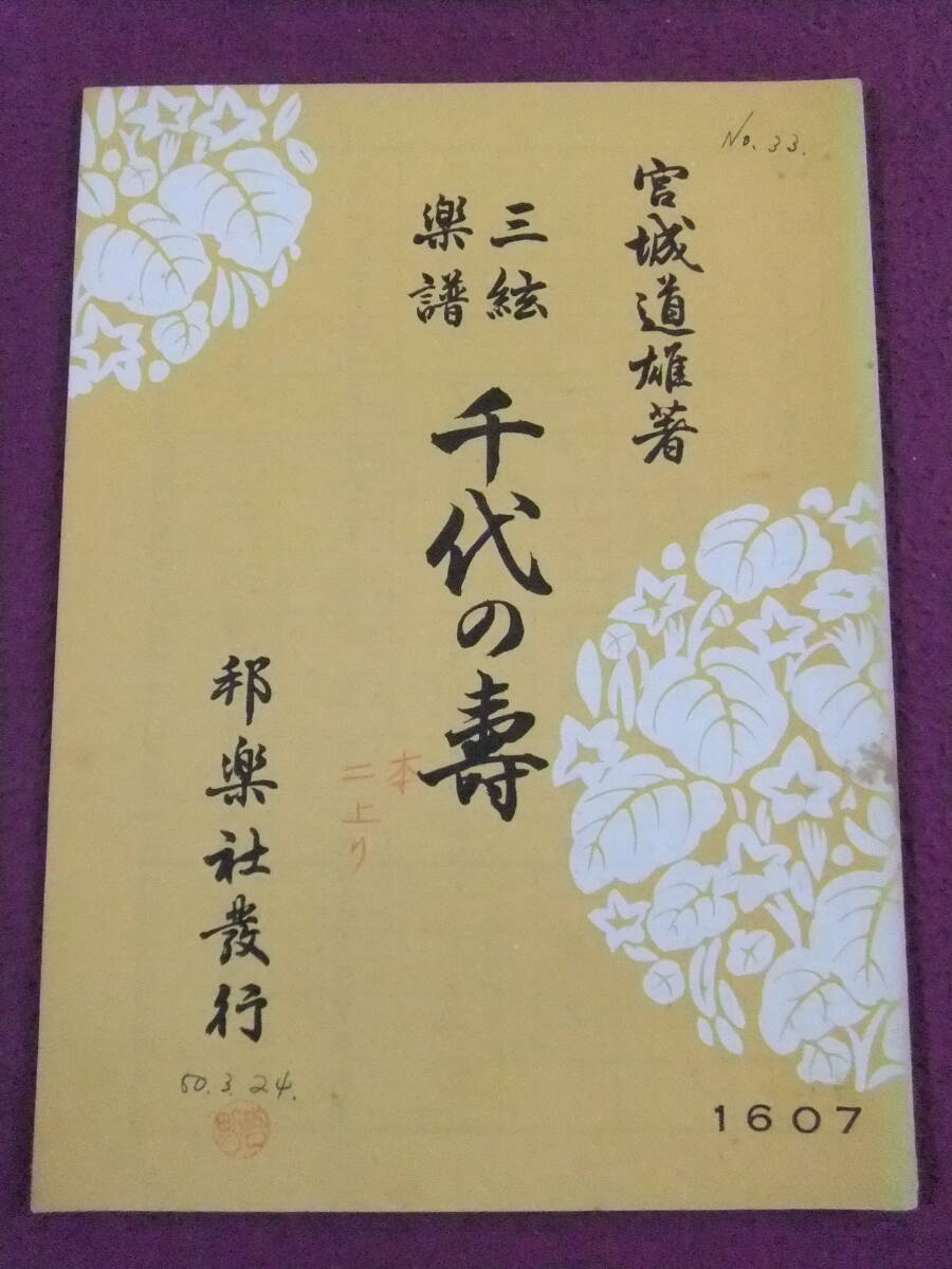 - ■A6784/【和楽器・楽譜】/『三絃楽譜 千代の寿』/1974.8.15/宮城道雄著/邦楽社■