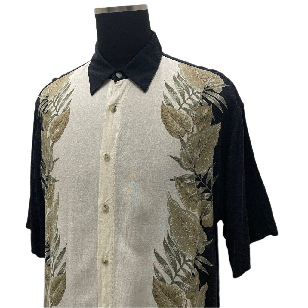 - USA古着 90’s pierre cardin レーヨン アロハ シャツ メンズ Lサイズ / 黒 モノトーン ブラック ピエールカルダン 半袖 総柄 ハワイアン