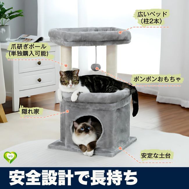- 【安全設計で長持ち】キャットタワー 猫タワー 小型 人気 爪とぎポール 麻紐 猫おもちゃ 省スペース 猫ハウス 展望台 おすすめ 人気 便利