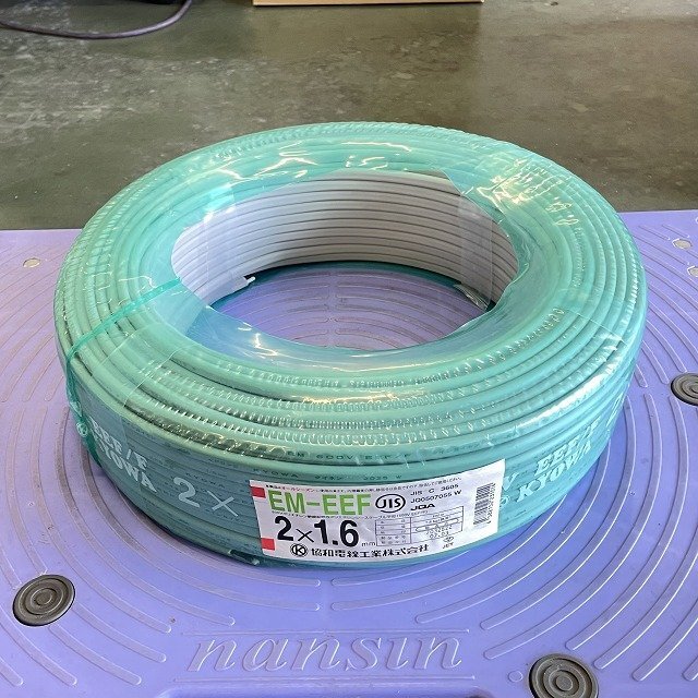 - EM-EEF 2×1.6 600Vポリエチレン絶縁耐燃性ポリエチレンシースケーブル平形 100m 協和 【未開封】 ■K0055545