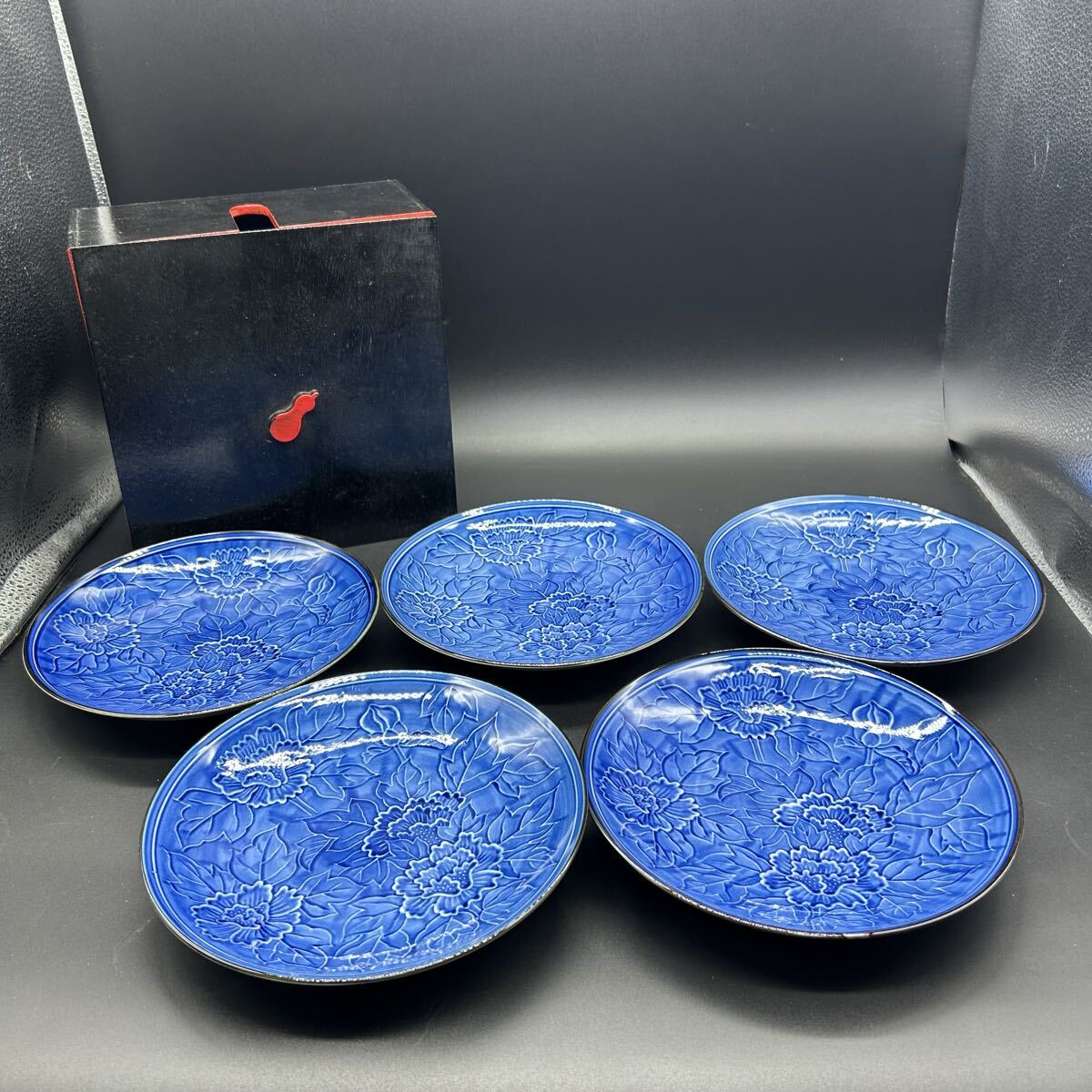 - 有田焼 肥前 哲三郎窯 染付 草花文 牡丹 和皿 中皿 食器 陶器 エ19