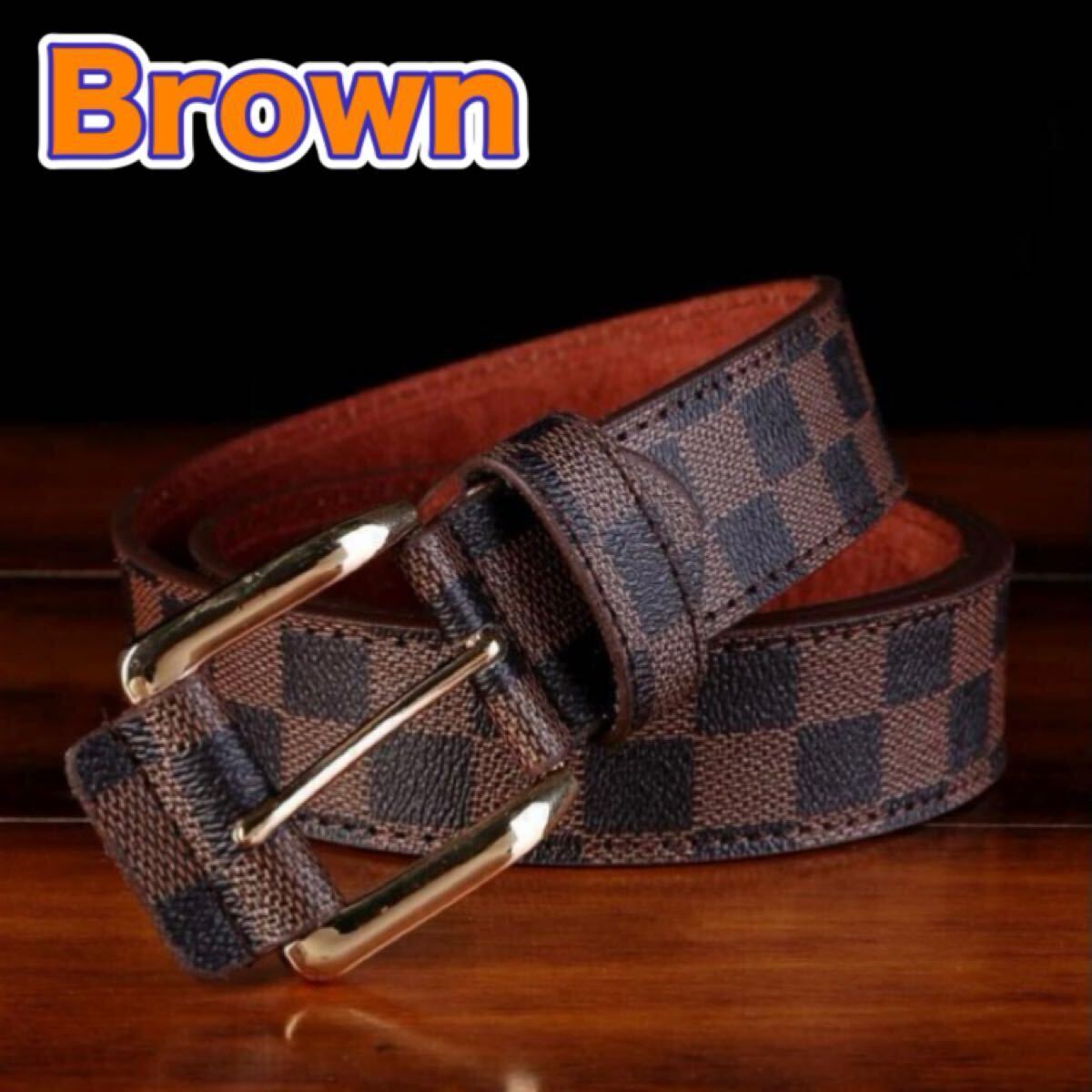 - ベルト ブロックチェック柄 市松模様 格子柄 ブラウン メンズ フェイクレザー エコレザー 高級感 オフィスカジュアル 新品