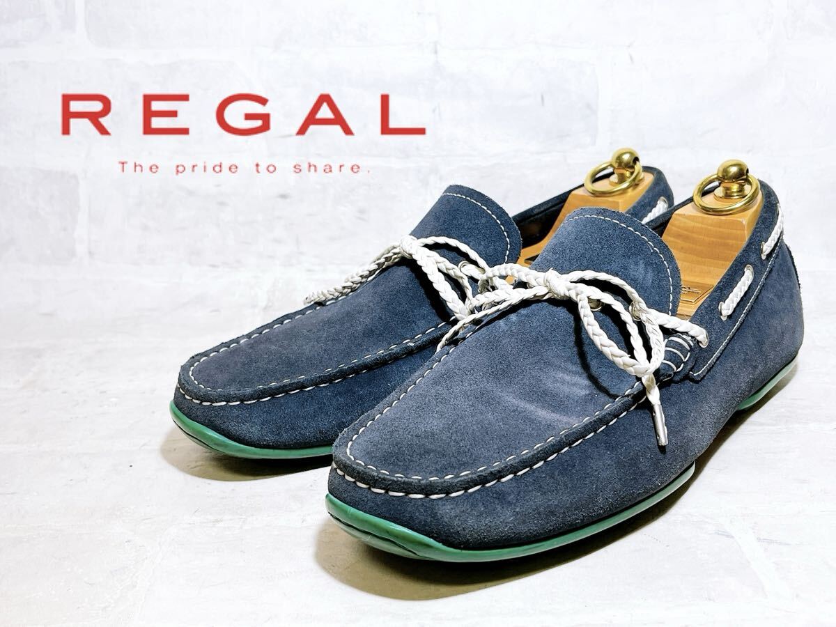 - 【美品】REGAL リーガル 上質 デッキシューズ ドライビング スエード ネイビー 本革 レザー 25cm メンズ 紳士靴