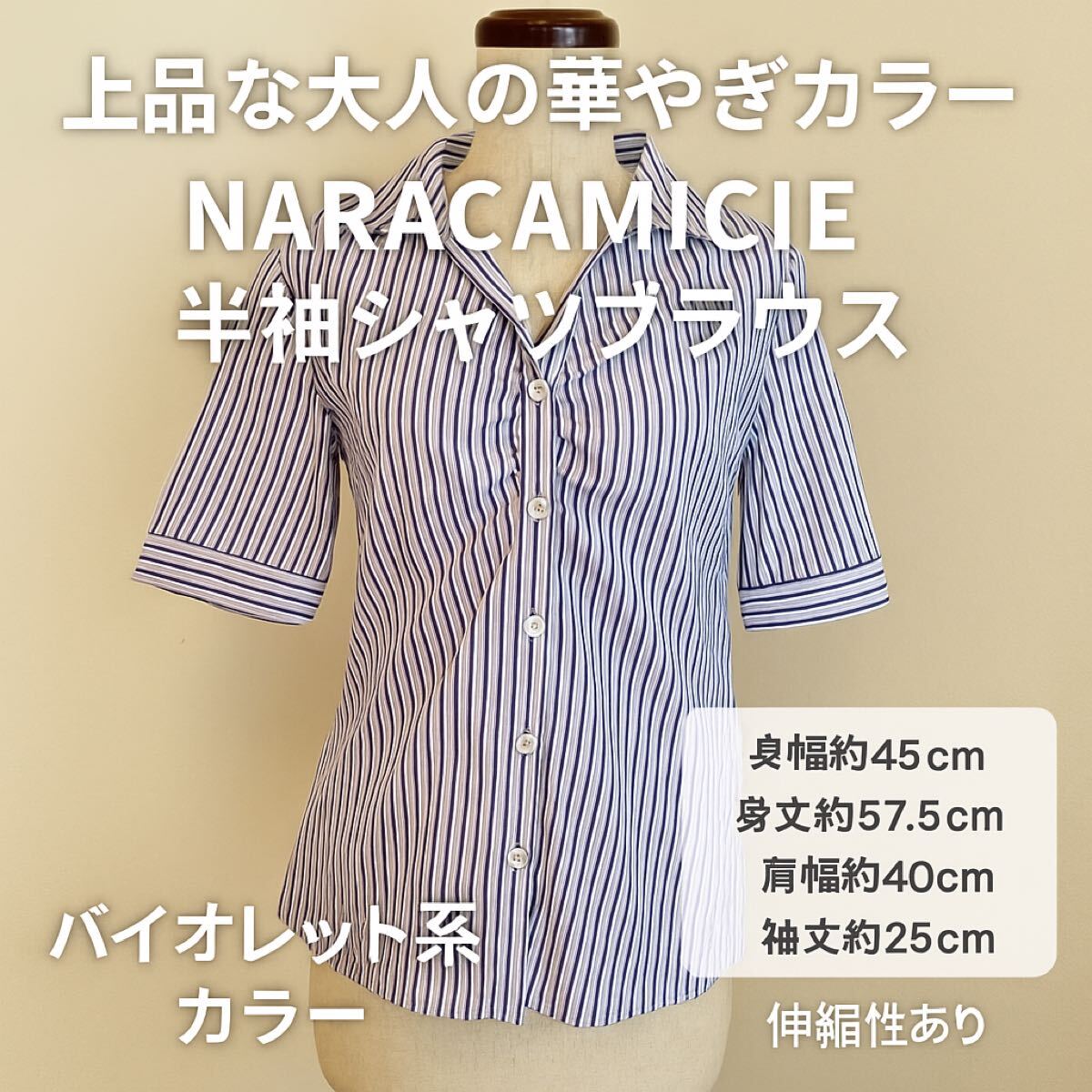 - NARACAMICIE ナラカミーチェ バイオレット 半袖ブラウス ストレッチ素材 きれいめ オフィスカジュアル M