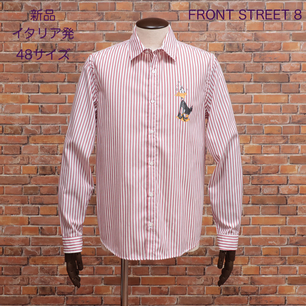 > 【新品・48サイズ・イタリア発】FRONT STREET 8・ダフィー・ダックプリント綿ストライプ長袖シャツ