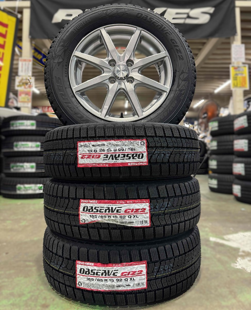 - アクア ヴィッツ ヤリス etc. [新品スタッドレス] 185/65R15 TOYO オブザーブギズ2 2025年製 + [中古] 社外 14インチホイール 4本セット