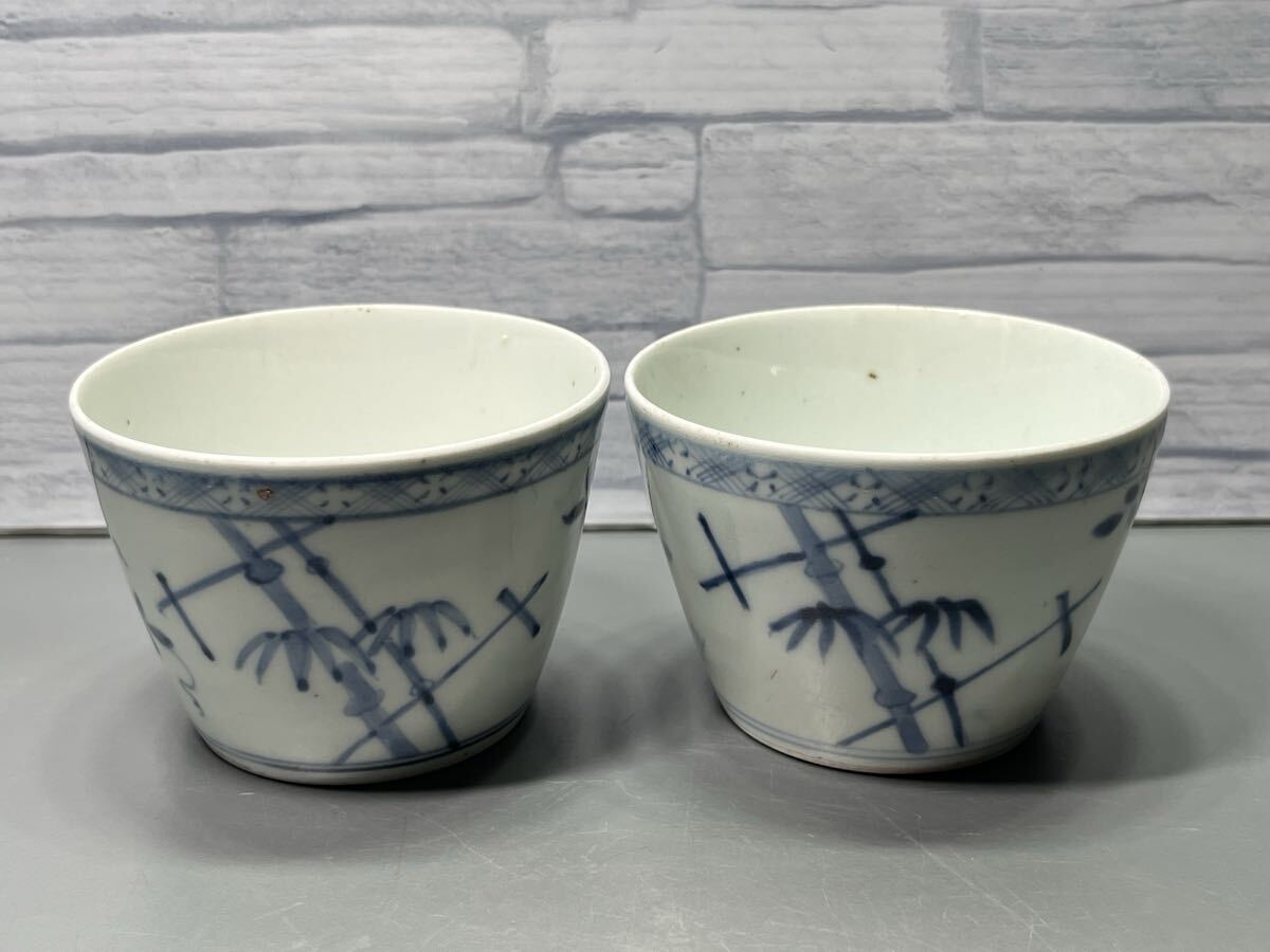 - 時代 藍柿右衛門手 竹藤染付 そば猪口 2個 大きめ