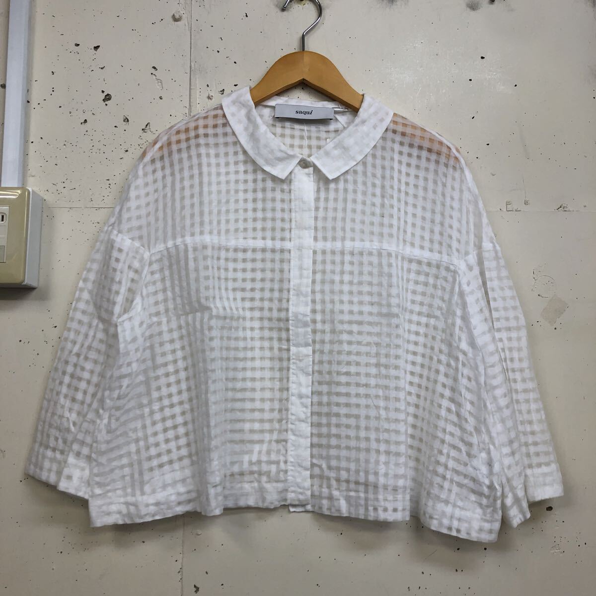 > saqui サキ シアーブラウス レディース チェック柄 長袖 白 ホワイト コットン&シルク 日本製 F フリーサイズ