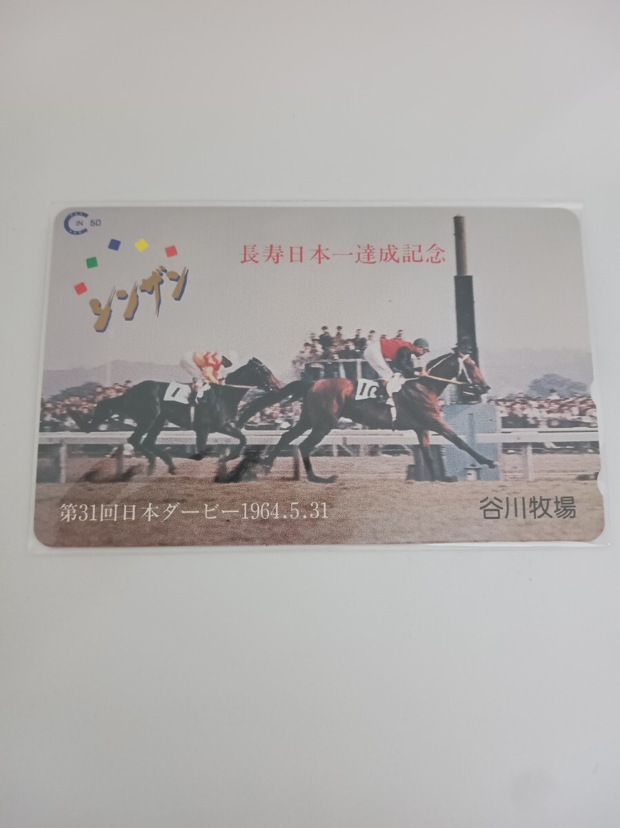 - シンザン 長寿日本一達成記念 第31回日本ダービー 1964.5.31 谷川牧場 未使用 テレカ 50度 テレホンカード