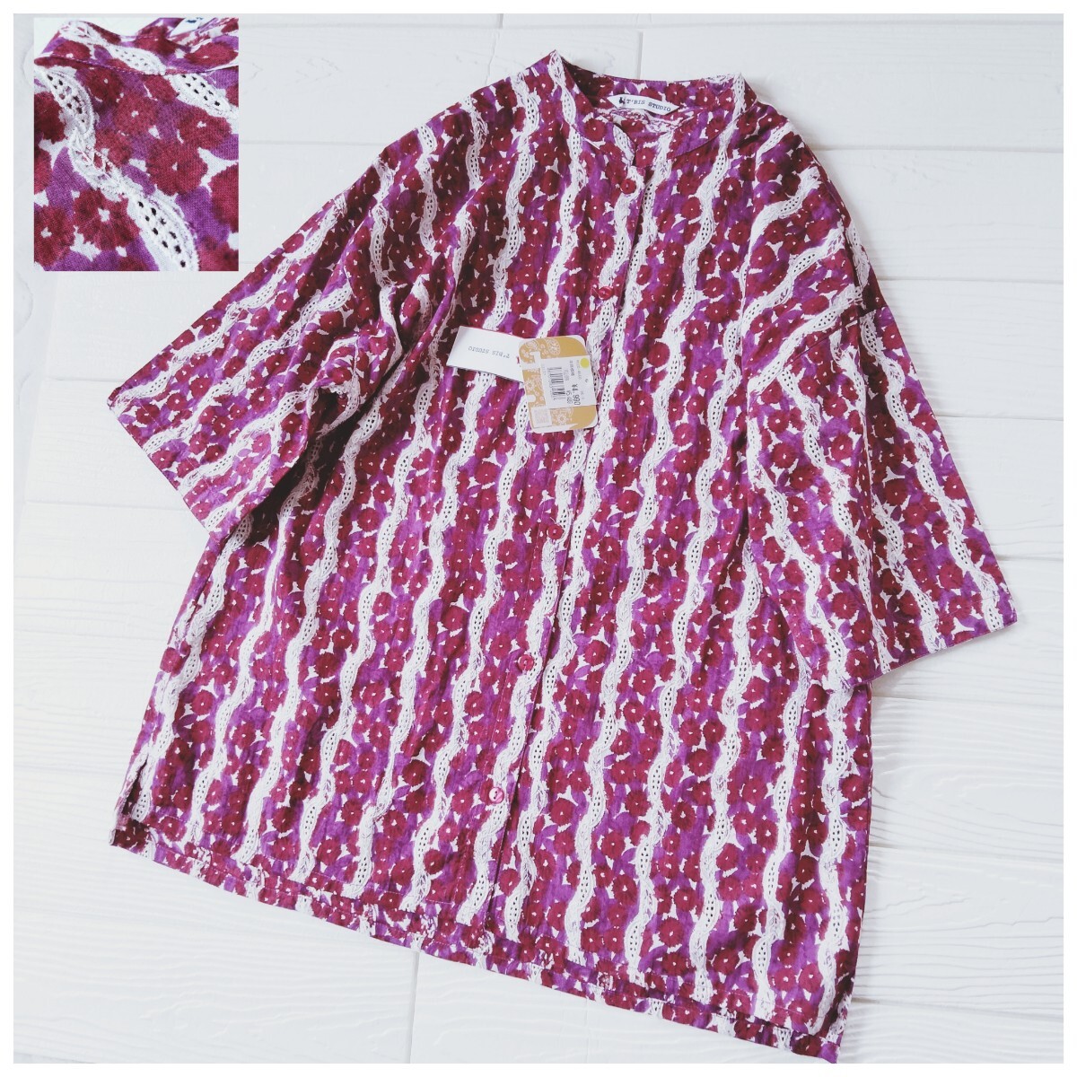 > 未使用*notorico*T' BIS STUDIO*半袖シャツ*ブラウス*コットン100%*インド綿*インド製*花柄×エンブロ刺繍*ティービス スタジオ*M~L