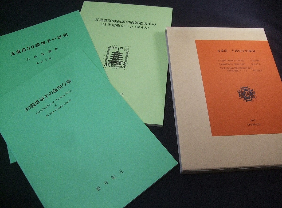 - 原寸大シート満載希少!「五重塔三十銭切手の研究」3冊組、未使用品。切手研究会