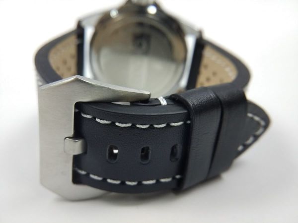 - ミリタリー腕時計ベルト 本革レザー ウォッチバンド 通気 バネ棒付属 24mm ブラック