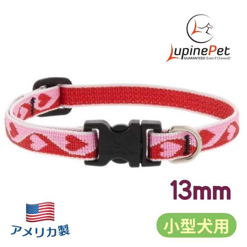 > スウィートハート柄 小型犬向けワンタッチ首輪 13mm幅 Sサイズ 20-30cm LUPINE アメリカ製 軽量丈夫 ルパイン Sweet Heart
