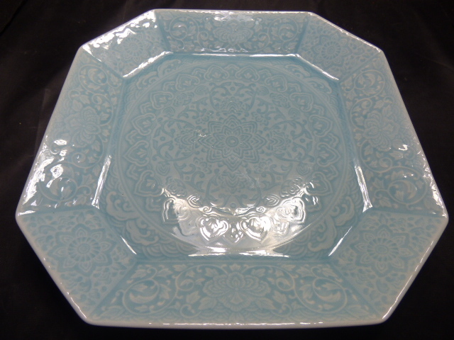 - み916.青磁桐唐草 八角皿 大皿 盛皿 和食器 華山 オードブルなど盛り合せ お鍋の具材の盛り付けに