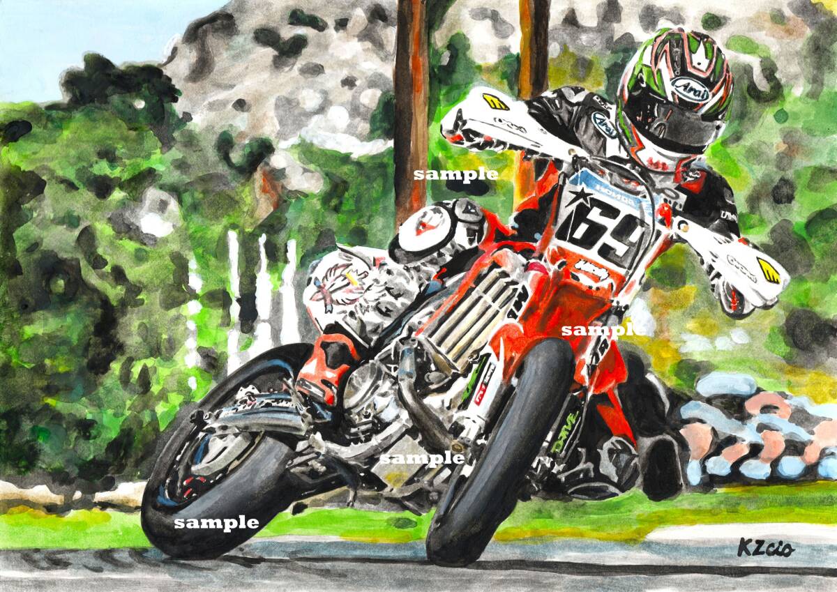 - A4プリントです AMA ダートラレース ホンダ ニッキーヘイデンライディング 水彩画 バイクイラスト
