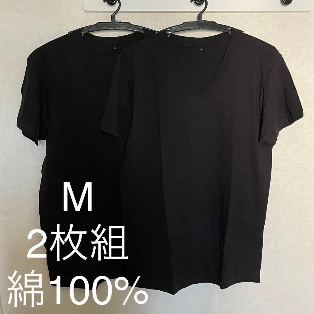 > 2枚組 M Vネック 綿100% 黒 ブラック V首 半袖 Tシャツ アンダーシャツ 男性 紳士 下着 メンズ インナー シャツ 半袖シャツ 定番♪