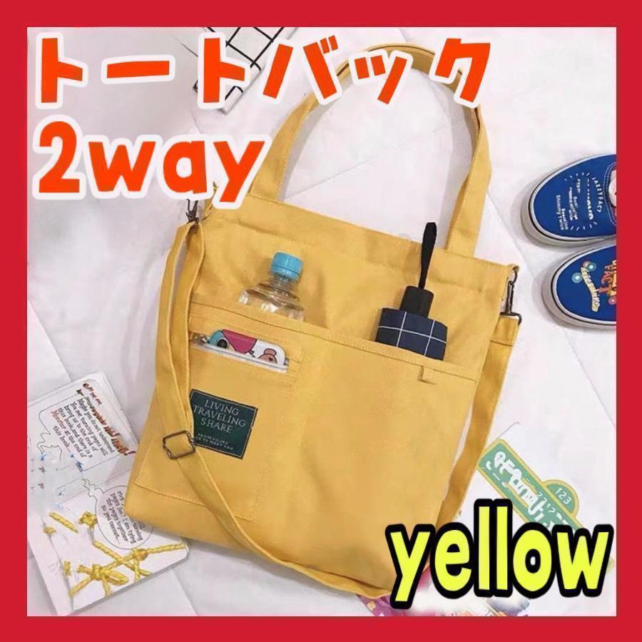 - トートバッグ ショルダーバッグ 2way キャンバス生地 軽量 通勤通学 黄色 fmt