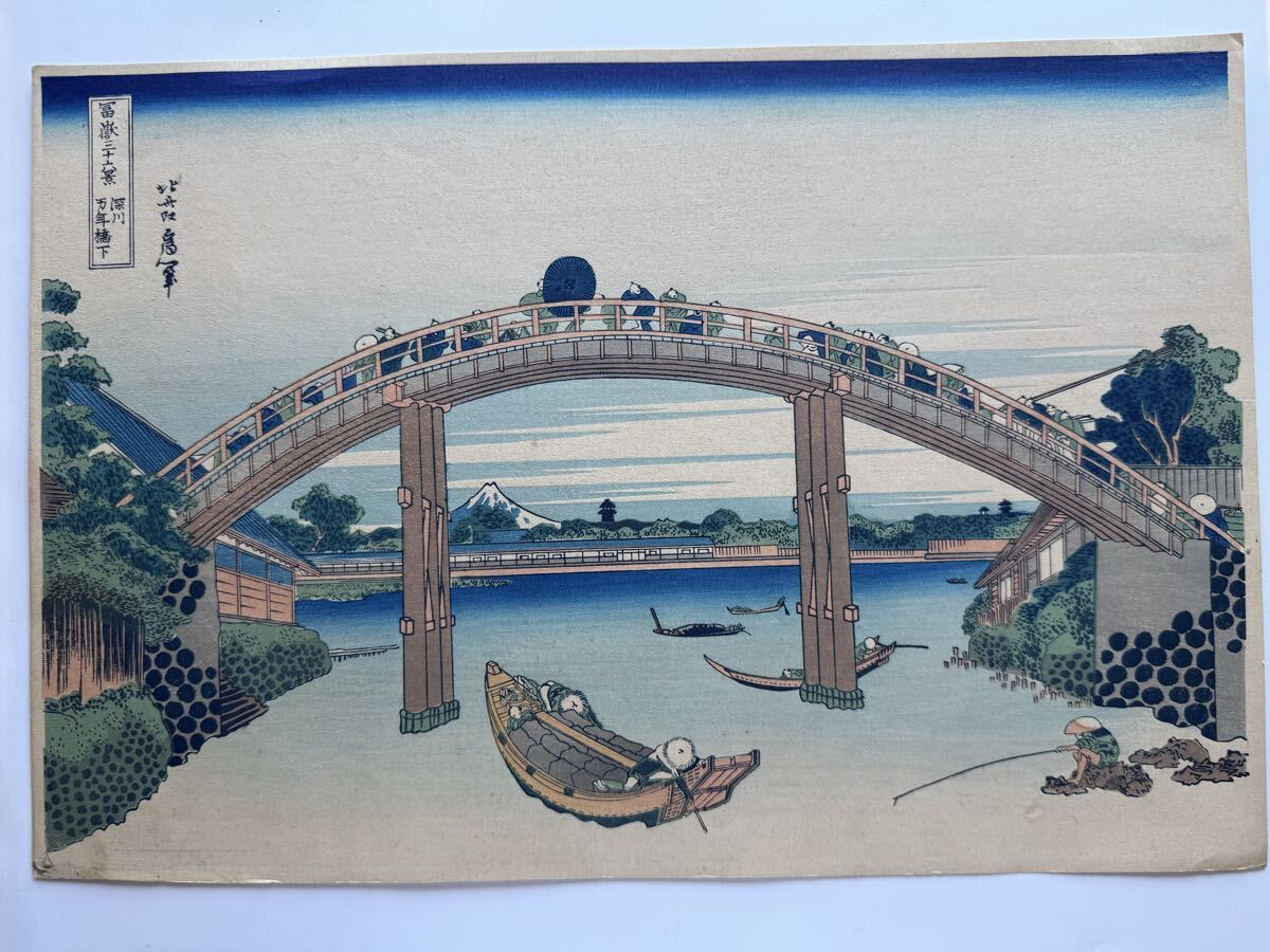 > 真作 明治大正期 初期高見澤木版 富嶽三十六景 『 深川万年橋下 』力強い擦りです。 浮世絵 木版画 葛飾北斎 名所絵 錦絵 約26×38cm