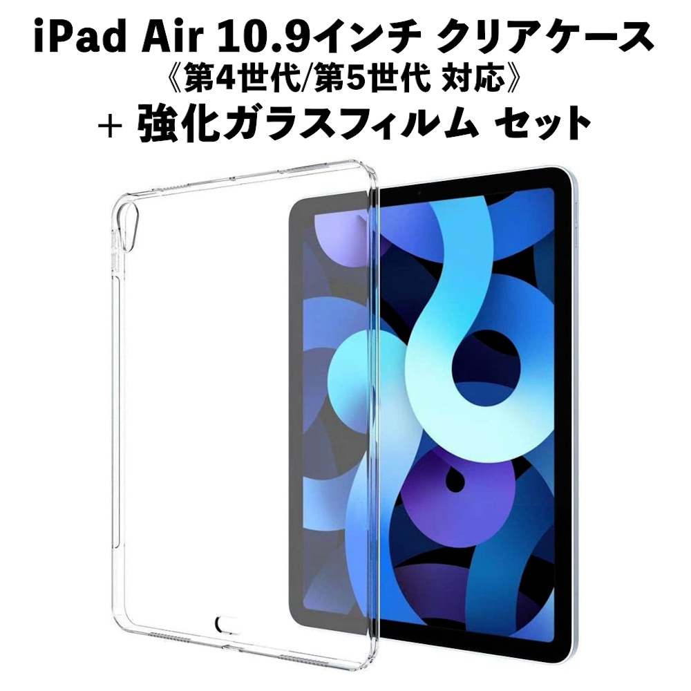 - iPad Air 10.9インチ 第4世代 / 第5世代 クリアケース 保護カバー + 強化ガラスフィルム セット まとめ買い