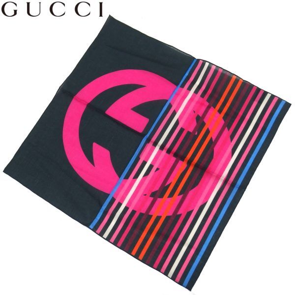 - 極美品★GUCCI GG ロゴ インターロッキング ストライプ ハンカチ コットン100% マルチカラー グッチ★