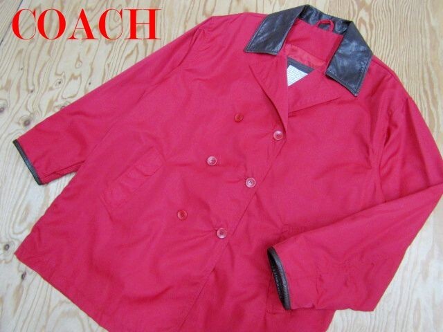 - ★コーチ COACH★メンズ 襟レザー ダブルブレスト ナイロンショートコート レッド★R70803019C