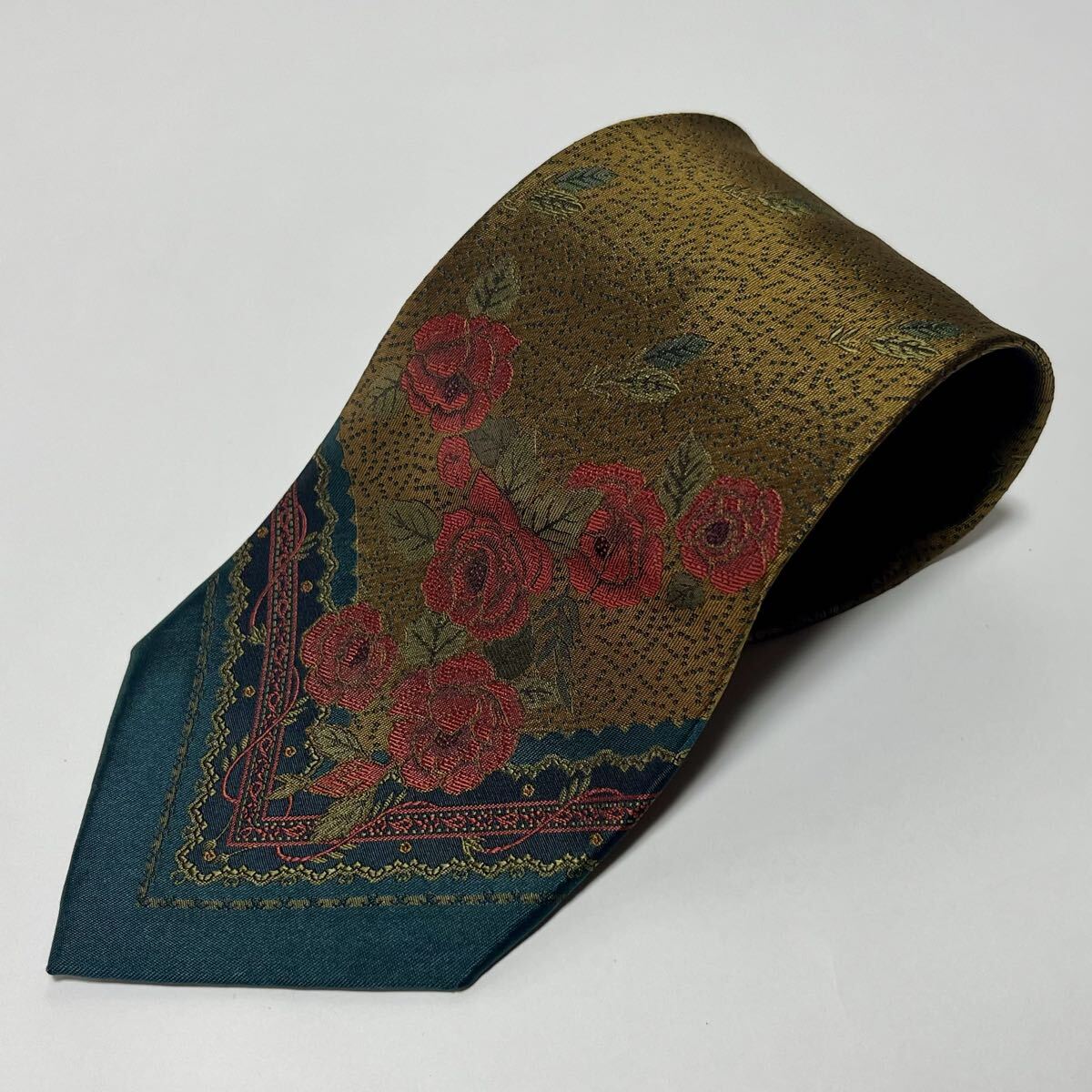 - HIROKO KOSHINO ネクタイ 花柄 バラ 薔薇 緑 グリーン 約140cm