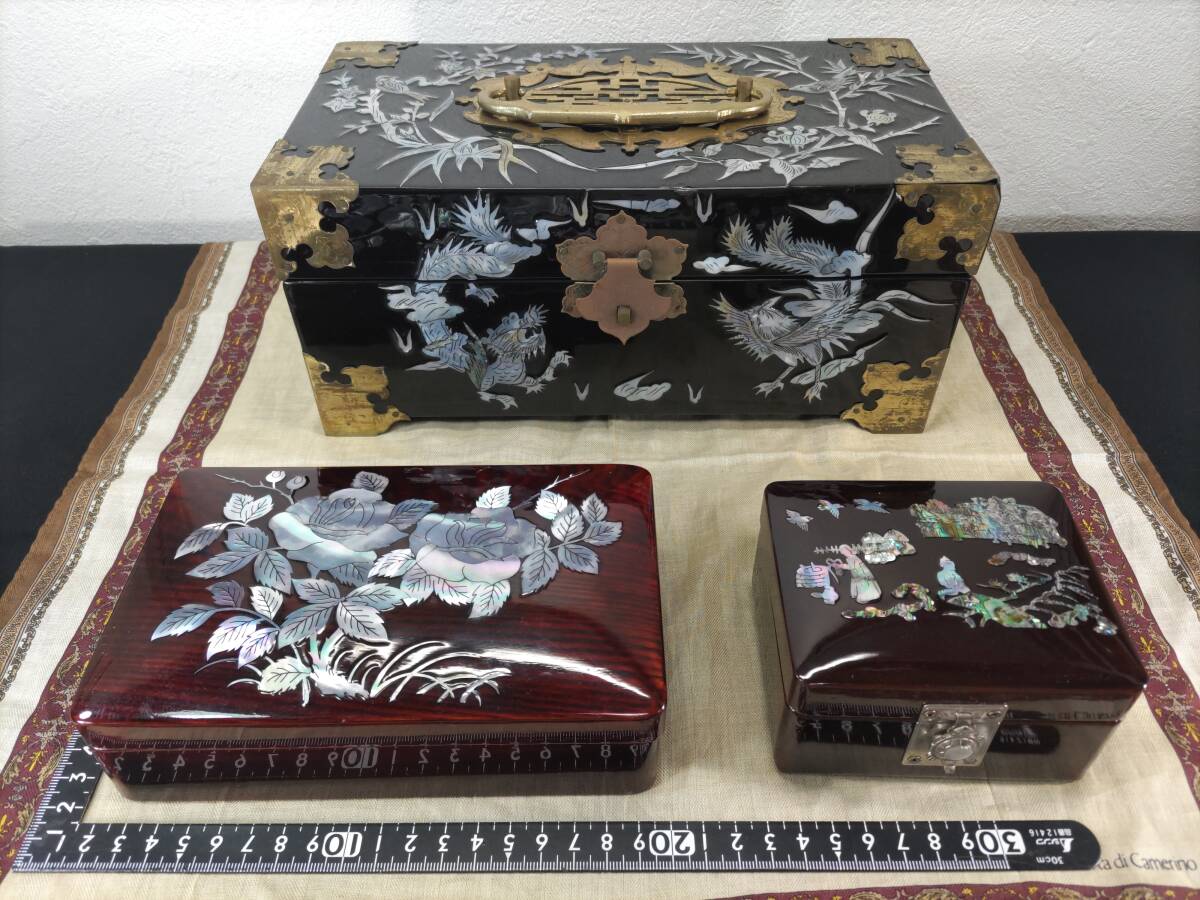 - ■送料無料!■まとめて■螺鈿細工・宝石箱・W27.5cm■ジュエリーBOX■小物入れ■韓国伝統工芸品■3点セット!