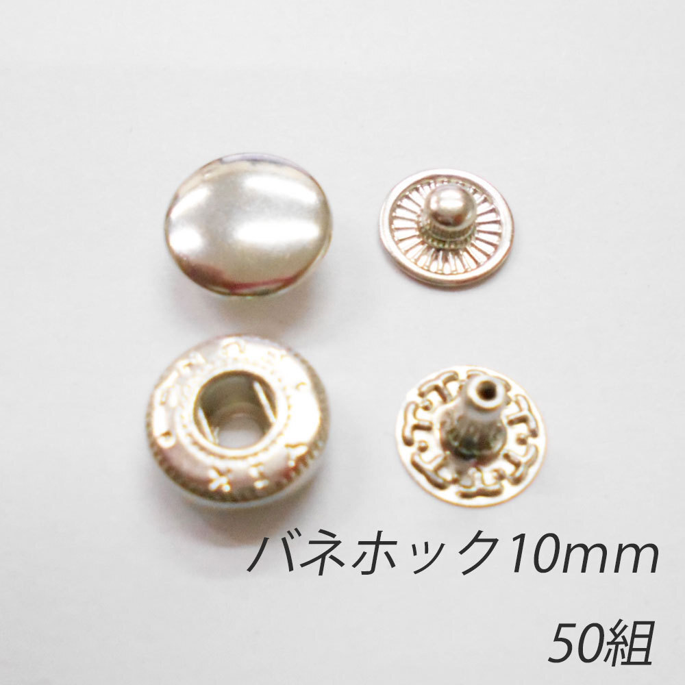 - レザークラフト バネホック 金具 10mm /50組 /シルバー/ ボタン 手芸 キット パーツ 革 材料