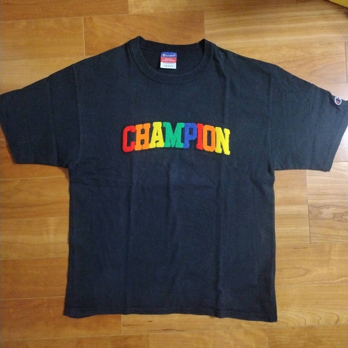> 貴重 入手困難 正規品 人気 チャンピオン CHAMPION 半袖Tシャツ M ブラック 黒 ワッペン アメカジ バイカー ストリート カジュアル