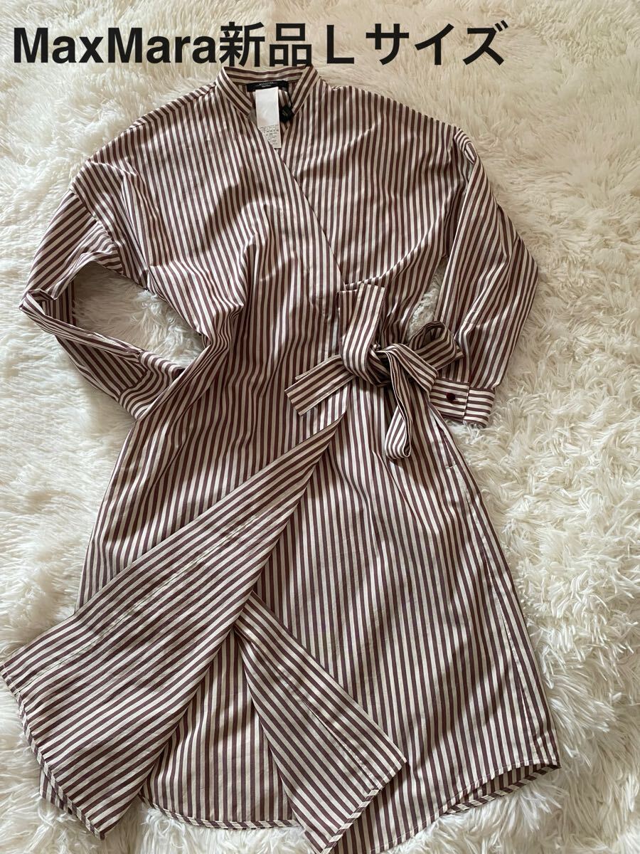 - MaxMara 新品 Lサイズ ストライプ ラップワンピース ブラウン系タグ付き 膝下丈