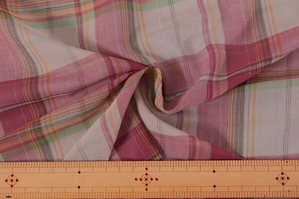 - ♪コットンガーゼ先染めチェック オレンジ 巾:112cm♪5m[4285]40